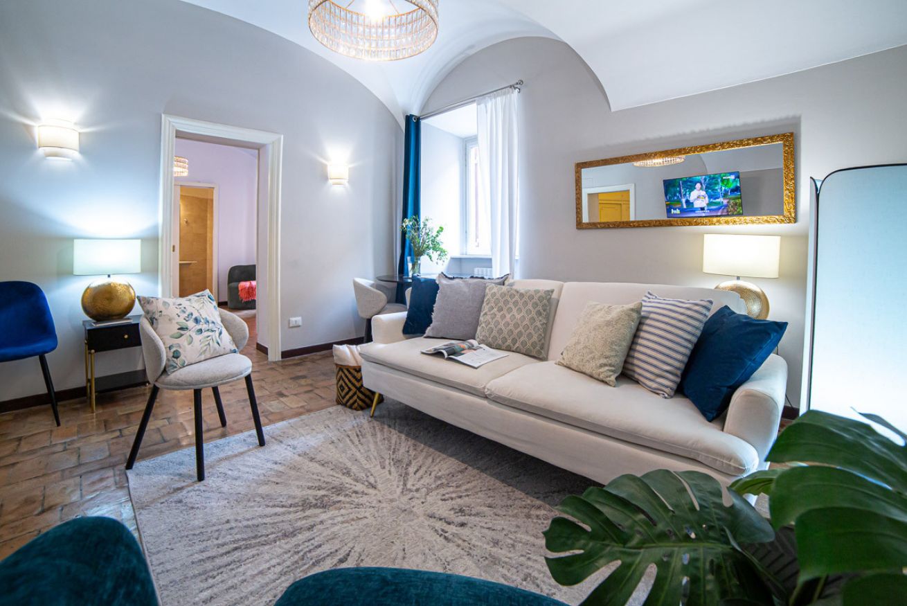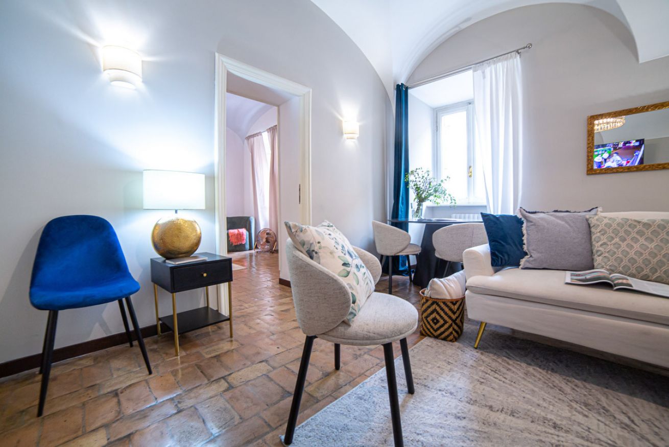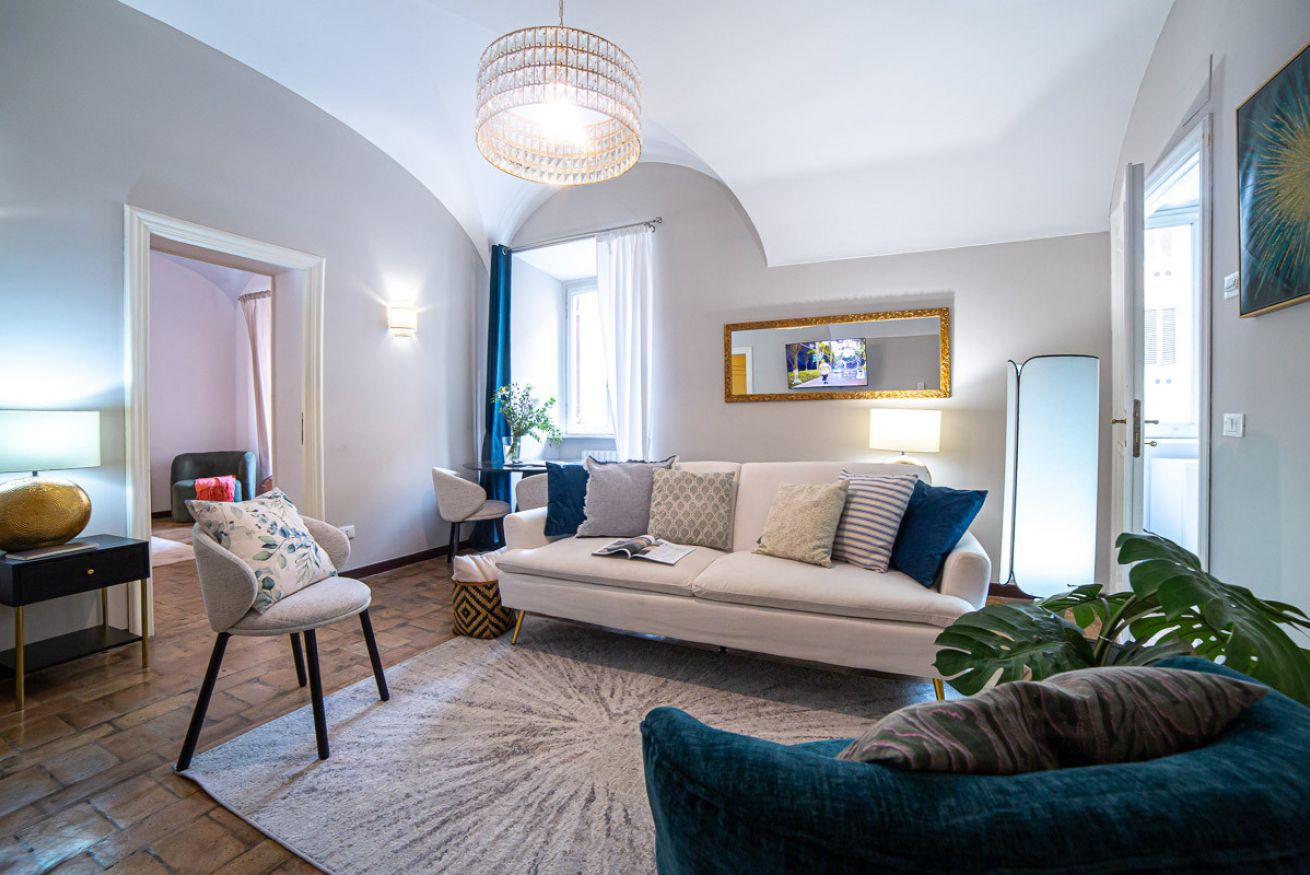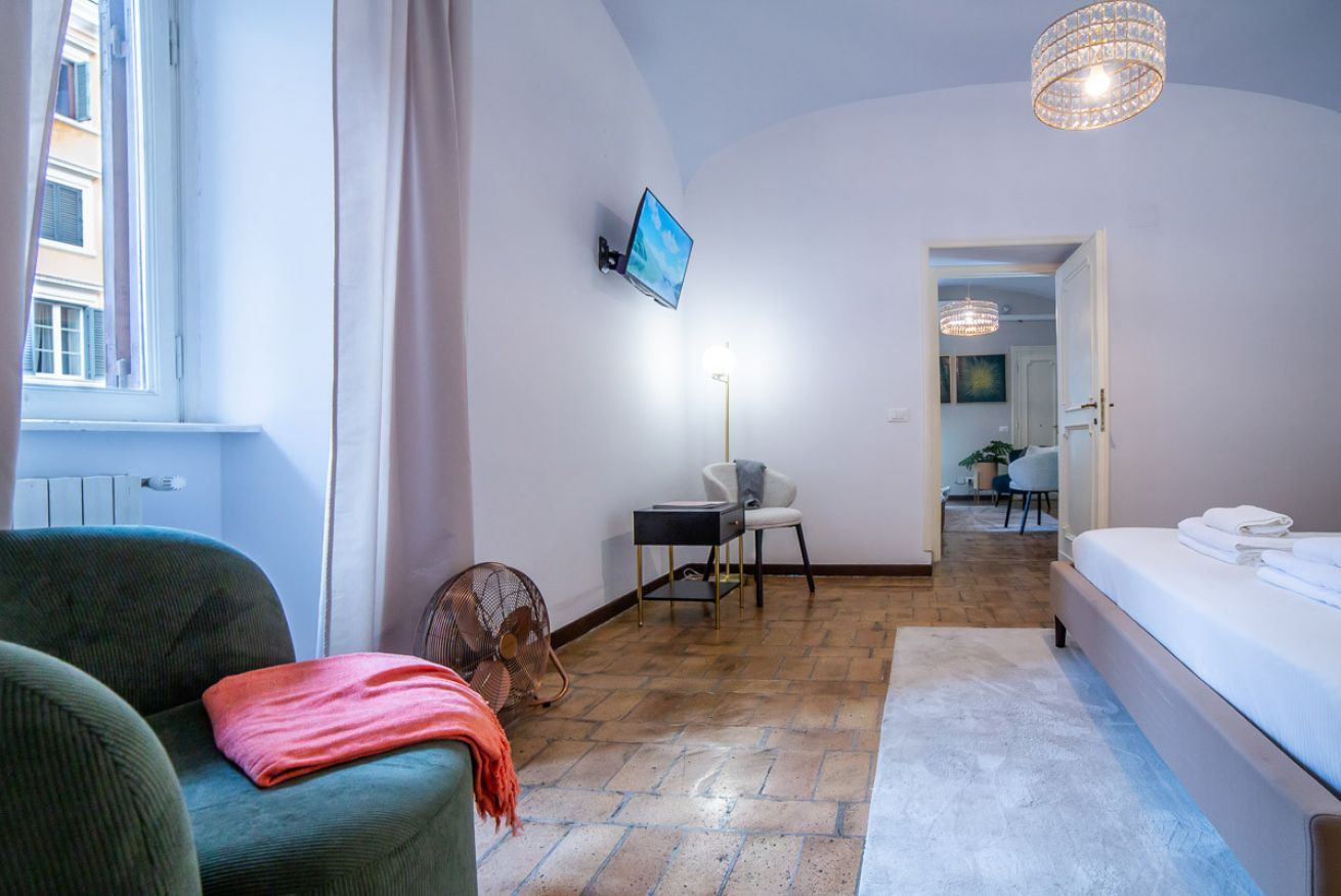 Set in a beautifully preserved 19th-century building, on the first floor with elevator access (a rarity in Rome!), it comfortably accommodates up to 6 guests. With curved ceilings, the space offers a truly memorable stay steps away from some of Rome’s most famous landmarks.