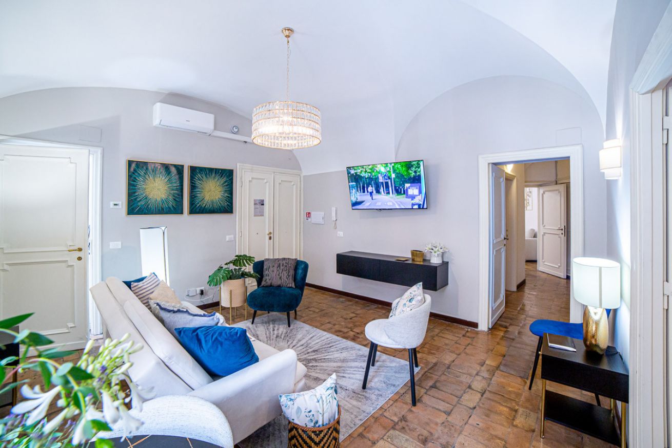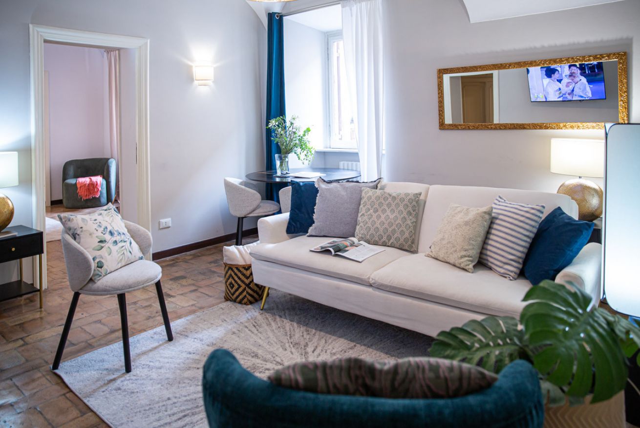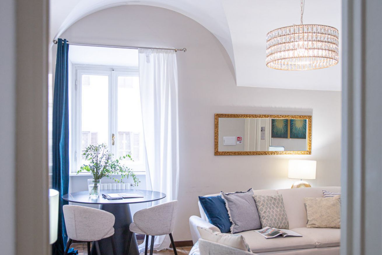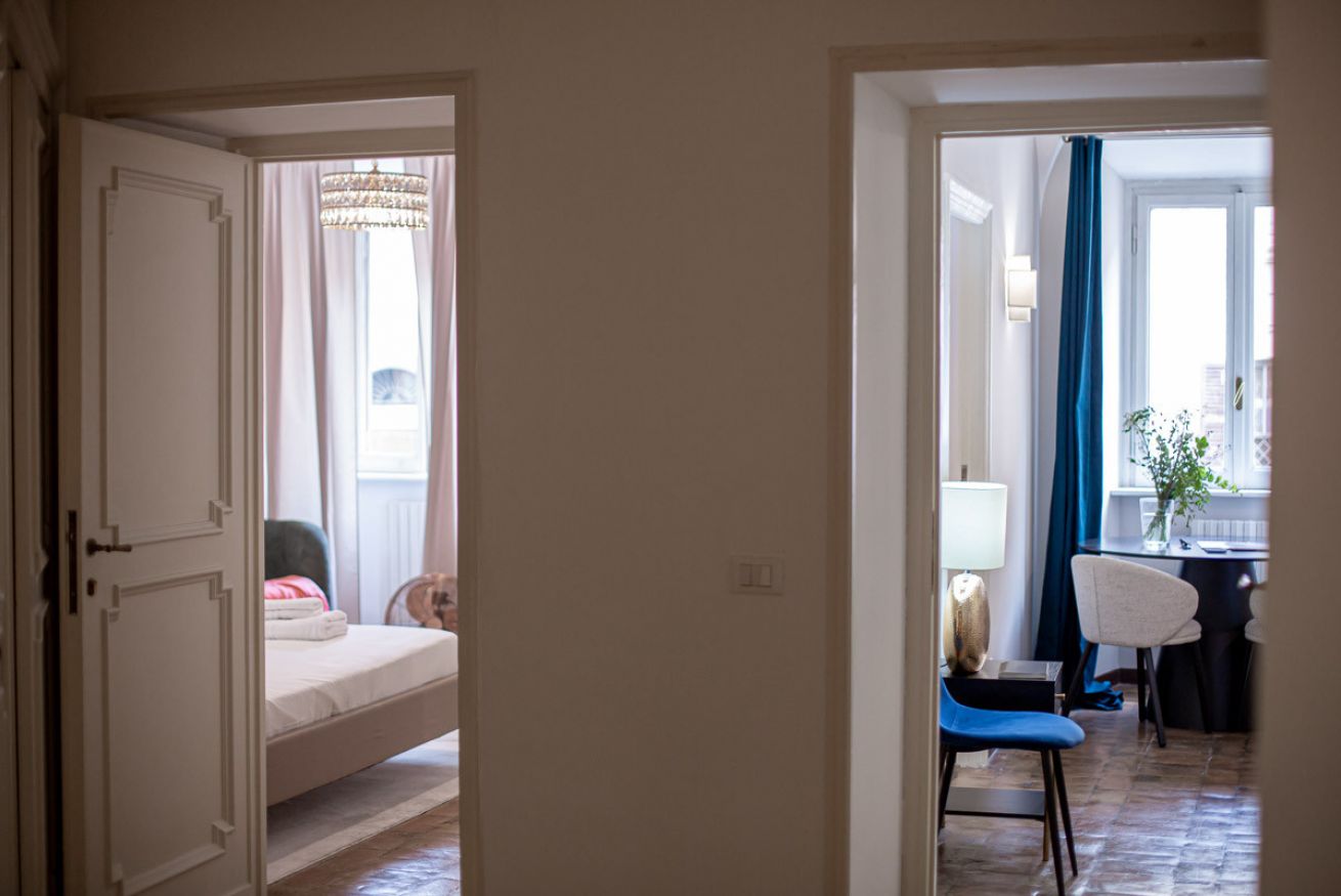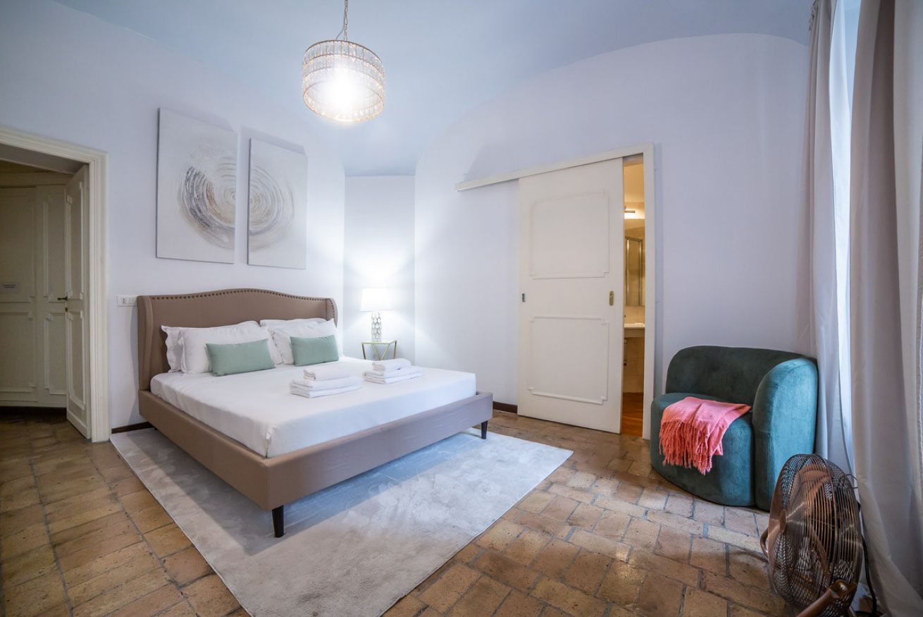 Set in a beautifully preserved 19th-century building, on the first floor with elevator access (a rarity in Rome!), it comfortably accommodates up to 6 guests. With curved ceilings, the space offers a truly memorable stay steps away from some of Rome’s most famous landmarks.
