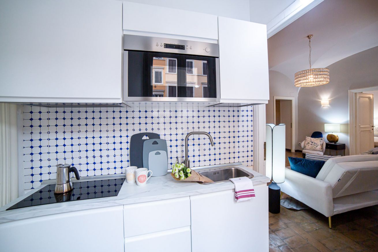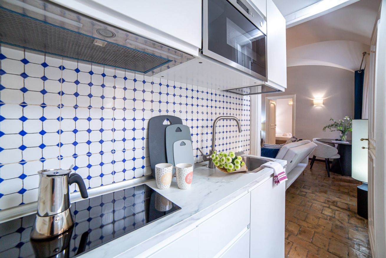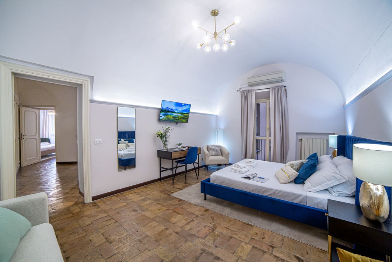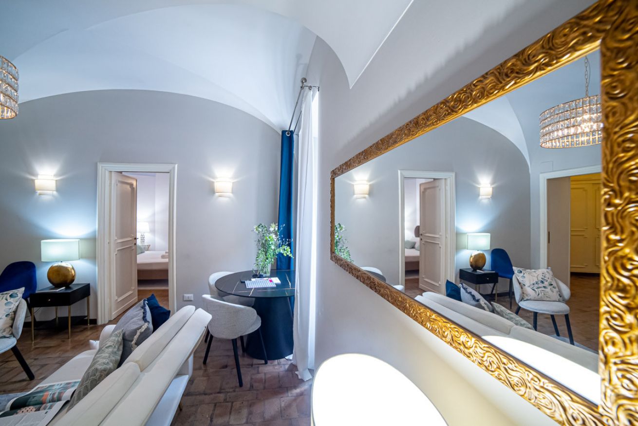 Set in a beautifully preserved 19th-century building, on the first floor with elevator access (a rarity in Rome!), it comfortably accommodates up to 6 guests. With curved ceilings, the space offers a truly memorable stay steps away from some of Rome’s most famous landmarks.